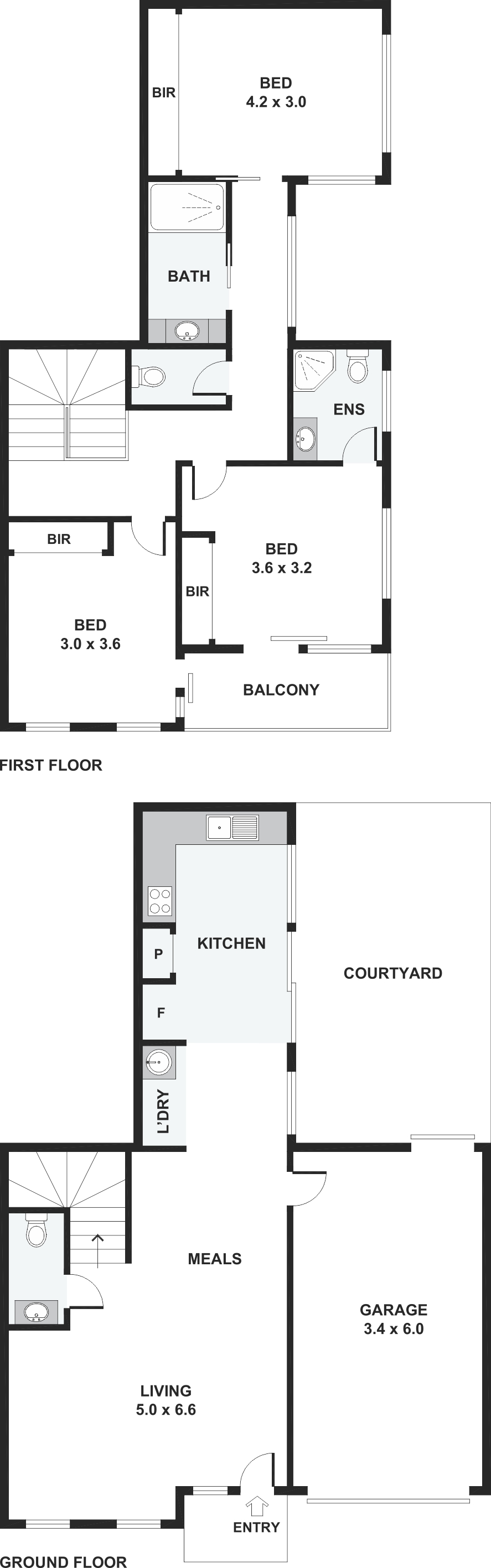 On the ground floor, you’ll find an inviting open-plan design that seamlessly integrates the kitchen and lounge areas, creating a spacious and cohesive living environment. This floor also features a powder room for guests, internal access from the single garage, and a private courtyard perfect for outdoor entertaining or quiet moments of respite.
