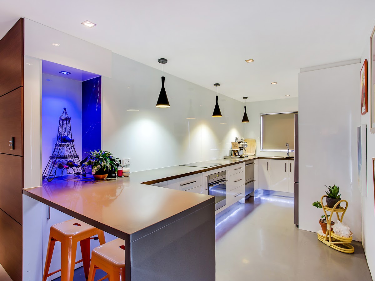 Inside you will find a kitchen large enough for a house with Ceasar stone tops, Two Pac doors and double dishwasher drawers.