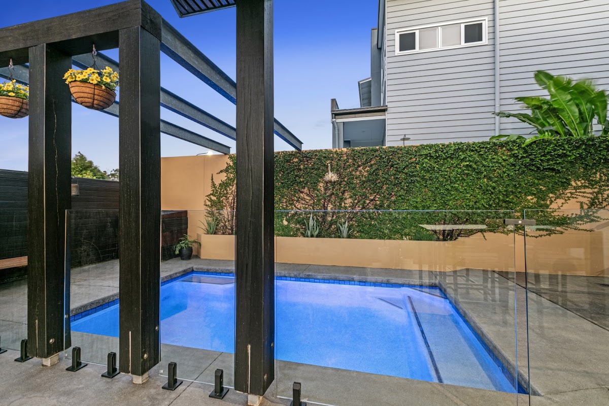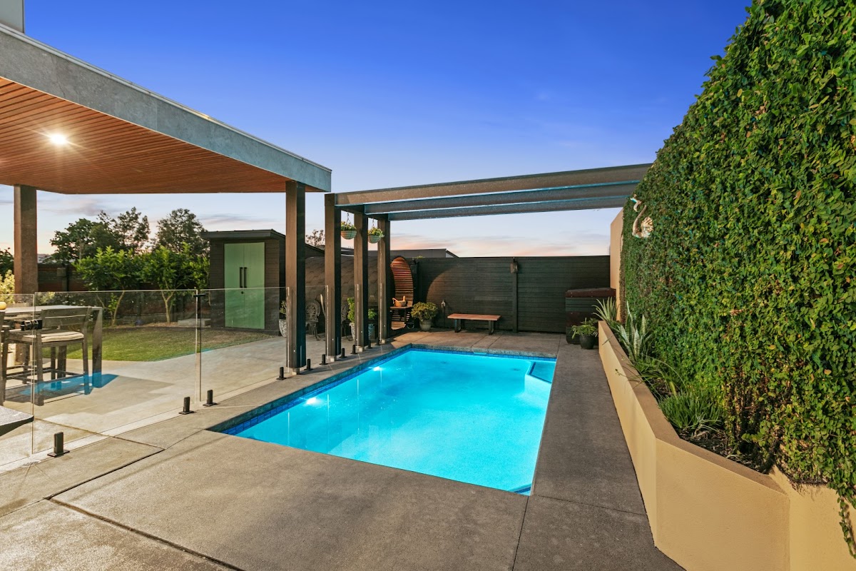 Step into your private sanctuary, where nature and luxury harmoniously intertwine. The stunning in-ground pool serves as the centerpiece of this outdoor oasis, surrounded by a beautifully designed feature garden and an impressive green wall that creates a tranquil and inviting atmosphere. The elegant blend of stone, wood, and glass throughout this space enhances its intimate yet luxurious feel, providing the perfect backdrop for gatherings or quiet reflection.