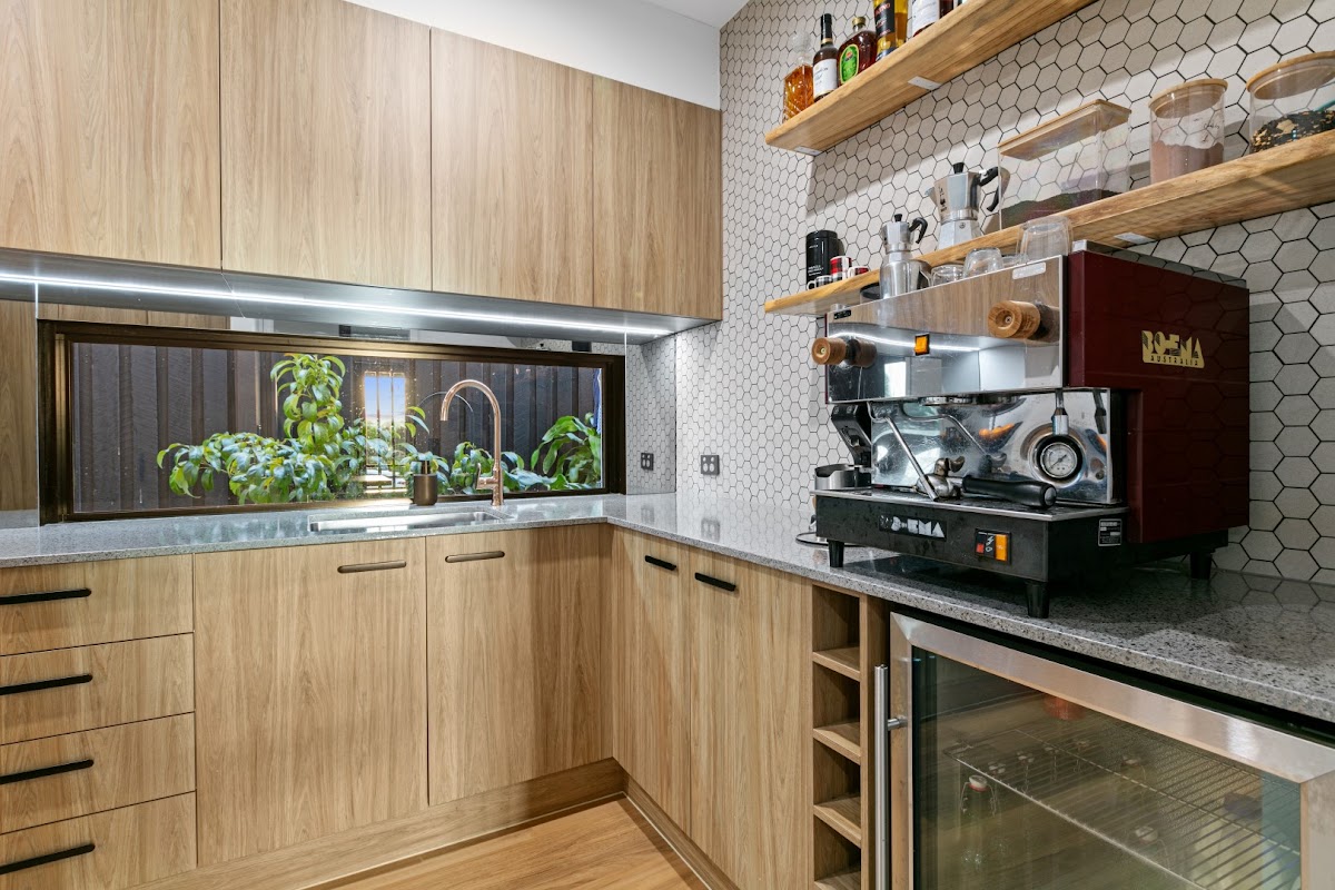 Every aspect of the home’s cabinetry has been thoughtfully considered, with handcrafted Camphor Laurel timber cabinetry in the bathrooms providing not just functionality but a bespoke, artisanal touch. The customised cabinetry within the kitchen and butler’s pantry is highly versatile and functionally designed to seamlessly accommodate all your culinary needs, providing ample storage while maintaining an elegant aesthetic.