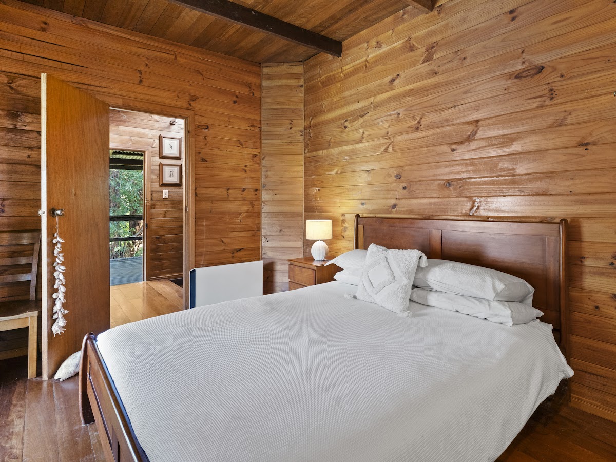 Designed with a striking octagonal roofline, this double-storey home reflects the creative spirit the region is known for. Bathed in natural light with an incredible outlook, this two-storey timber home offers two bedrooms, a slate tiled bathroom, a double carport, plus outdoor spaces including expansive timber decks upstairs and downstairs positioned to take in the lush green landscape. Year round comfort is assured with the homes combination of combustion fireplace and air conditioning. The size of the block means yard work is minimal and leaves you all the more time to relax. The current scale and layout of the home make it ideally suited to a single person or couple seeking a peaceful lifestyle immersed in the landscape, however for someone seeking more floorspace there is room to extend the living space downstairs or to add a bedroom upstairs (STCA).