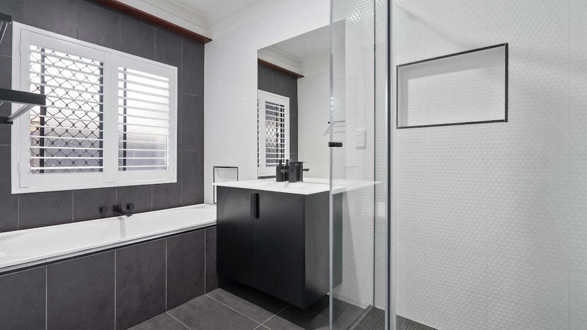 Three spacious family or guest bedrooms, each with built-in wardrobes and peaceful garden views, all conveniently located near the renovated central bathroom with freestanding shower, large vanity and bathtub.