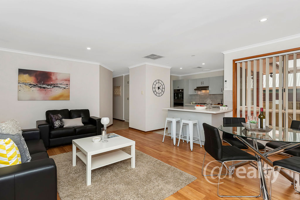 * The family/dine area is adjacent to the kitchen with split system reverse cycle air conditioning and sliding doors leading out to patio.