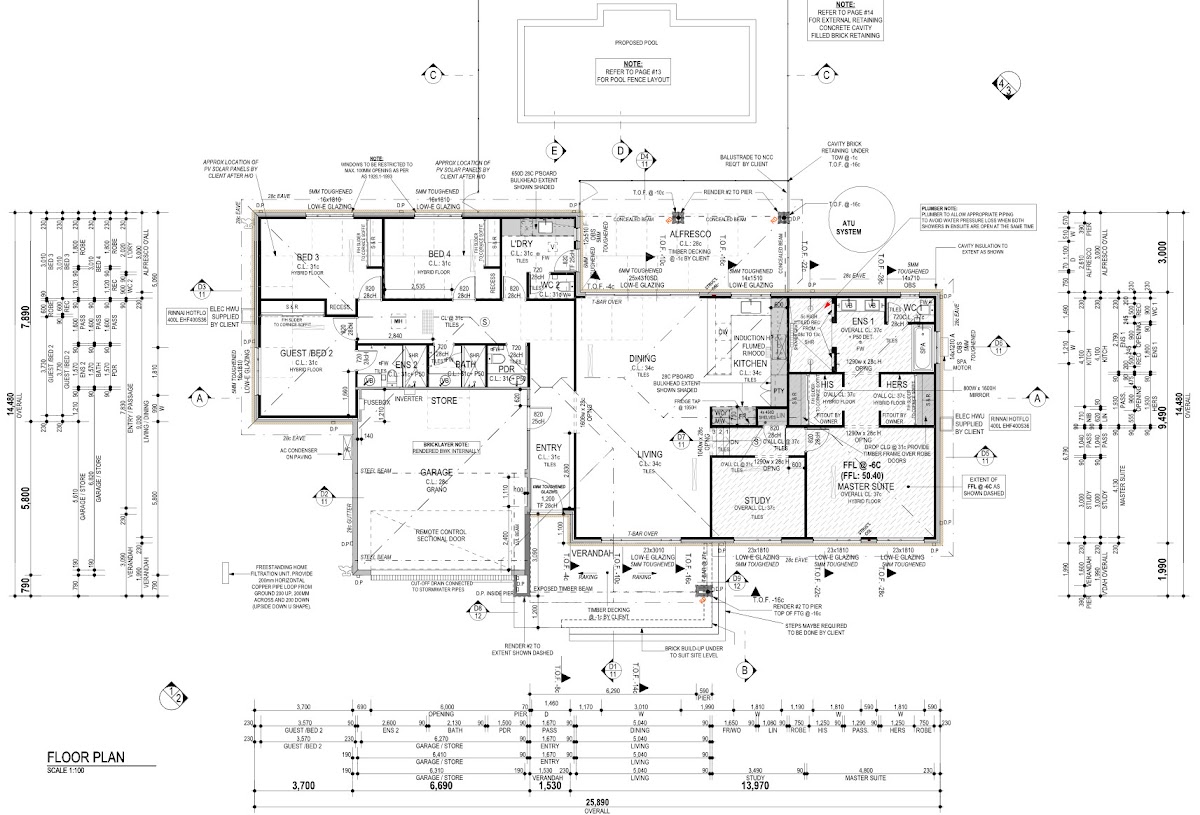 • 34C ceilings to Entry Living, Kitchen and Dining and 31C ceilings to rest