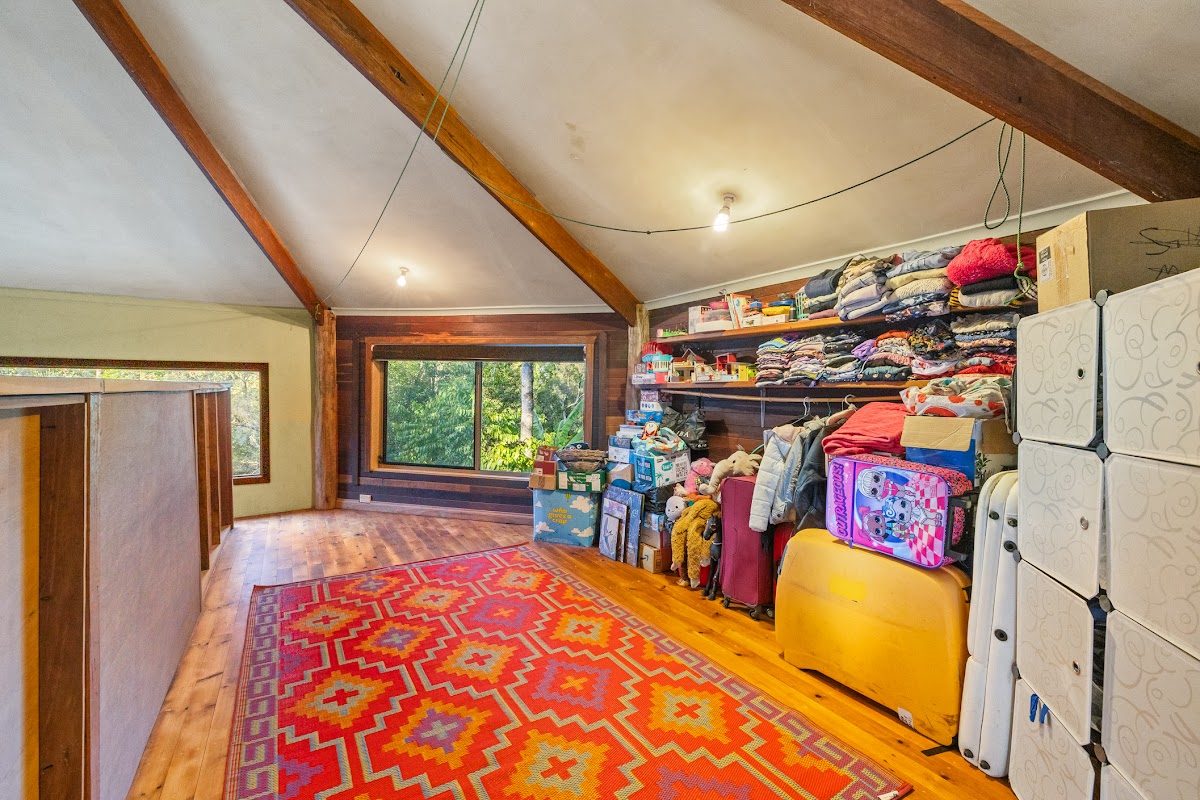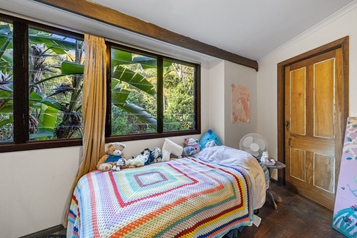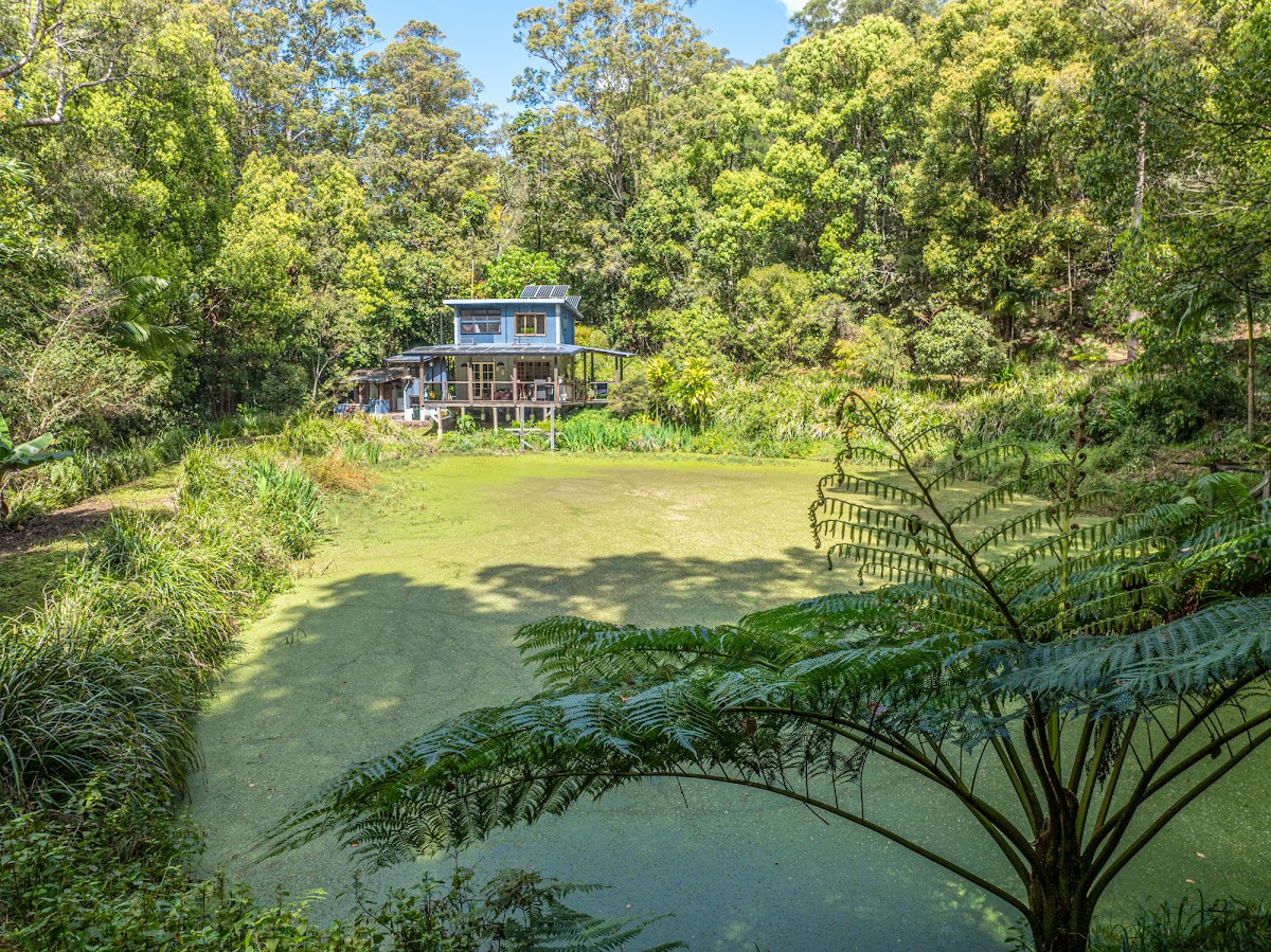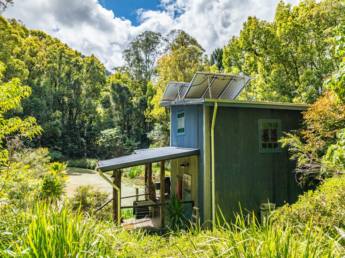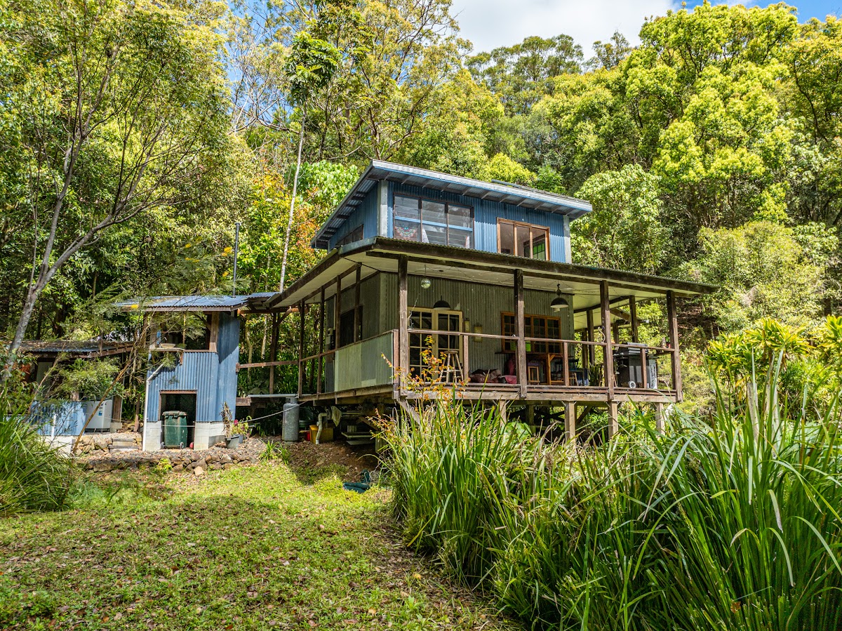 The main residence is a charming 3-bedroom hardwood home, full of warmth and character. High ceilings capturing plenty of light, timber finishes, wood heater and wide verandahs to embrace the natural surrounds, creating a tranquil retreat that feels both welcoming and timeless. Elevated on piers, the home enjoys leafy outlooks and cooling breezes, with covered outdoor living areas perfect for year-round relaxation.