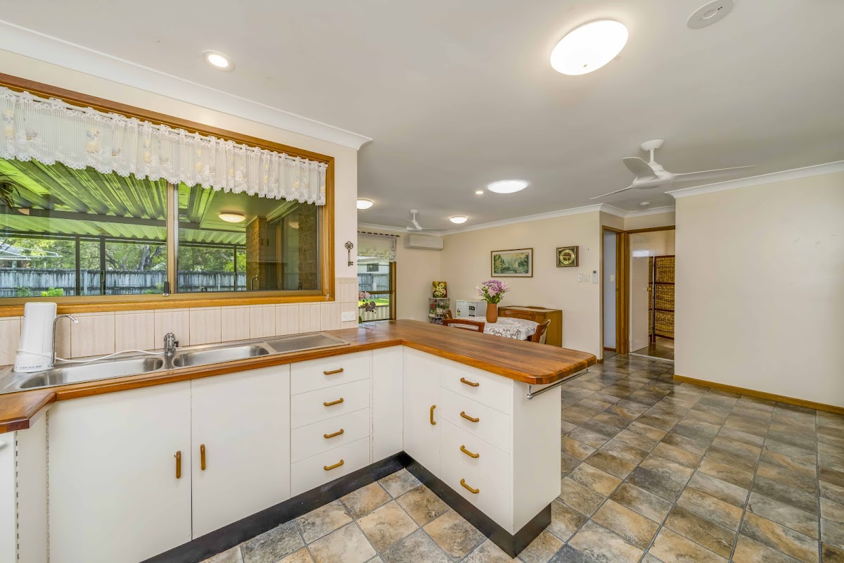 A brick and tile construction, the home is spacious inside with a fully fenced backyard.