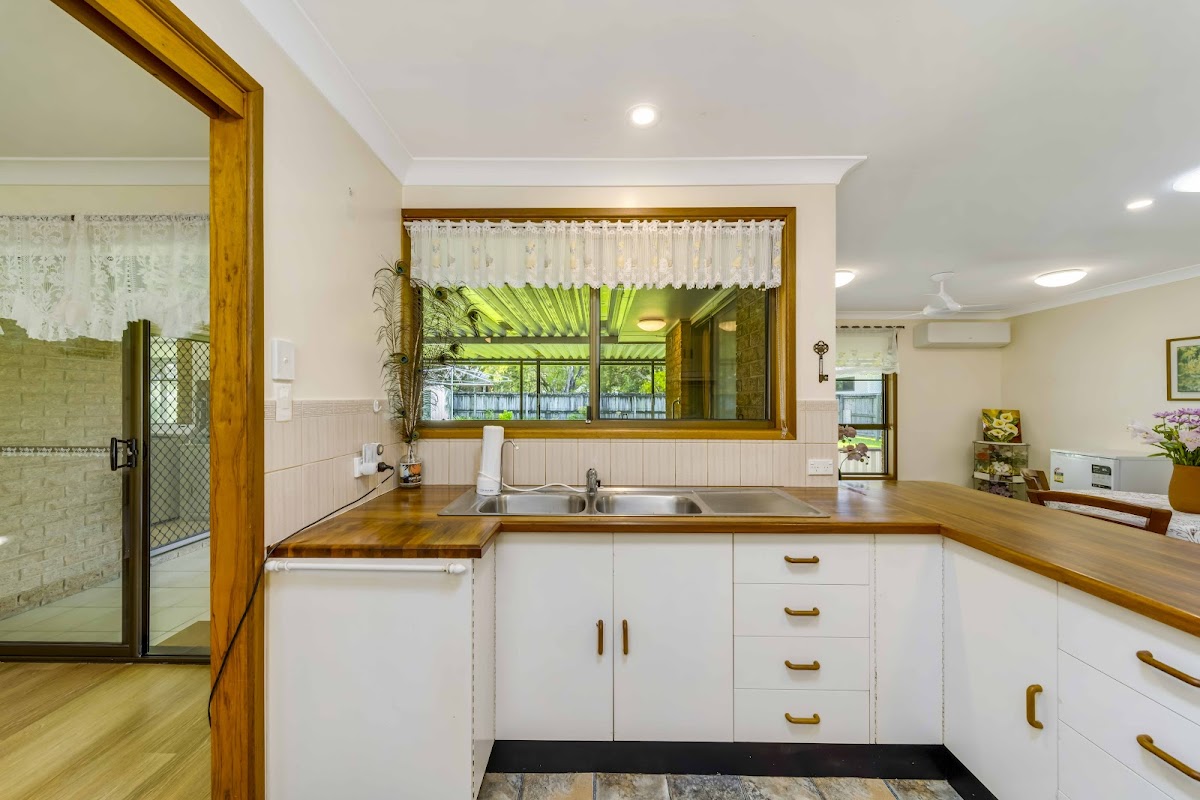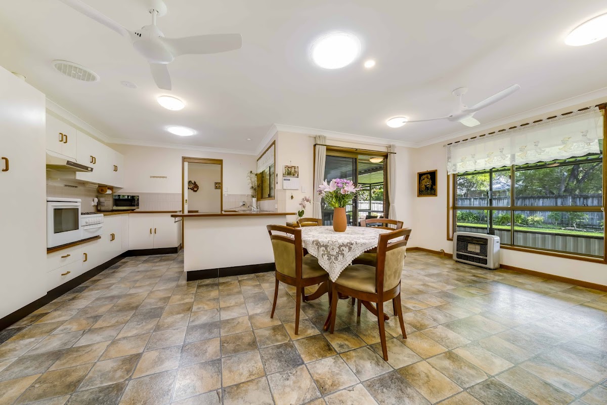 Enter into the lounge which flows through into the rear entertaining area. The open plan kitchen, dining and family room also opens onto the insect proof enclosed verandah.This is a great feature of the house, offering multiple options.