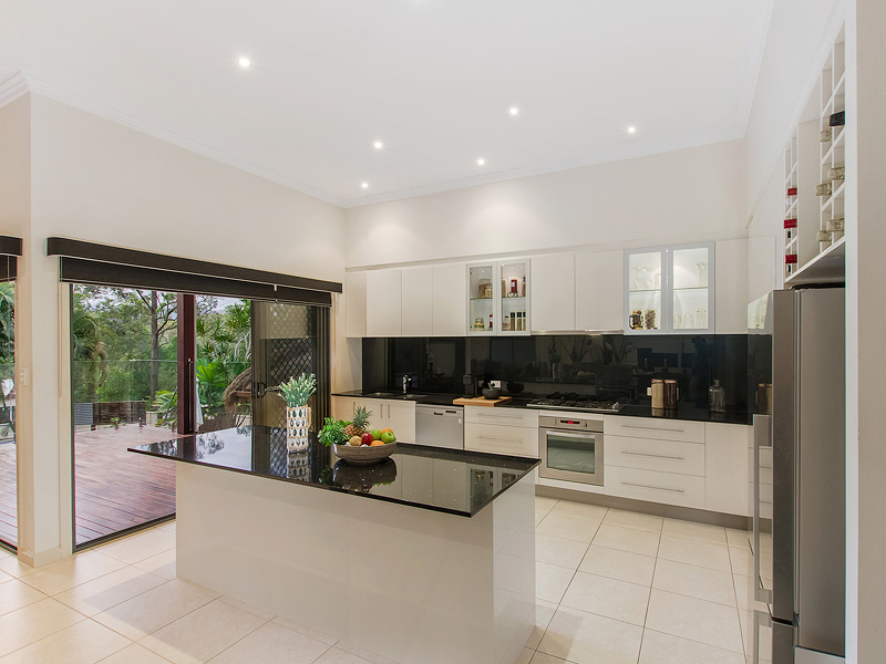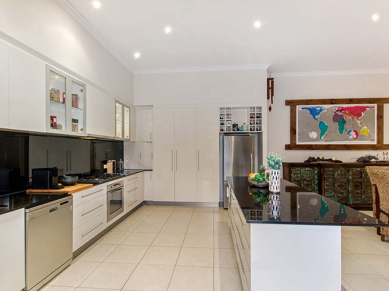 Gourmet Kitchen with Stone tops, 2 Pac cupboards, Gas Cooking and Stainless Steel Appliances and loads of bench space and storage.