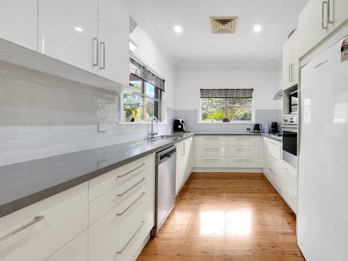 The beautifully renovated kitchen is a chef’s delight, equipped with state-of-the-art appliances and specially appointed