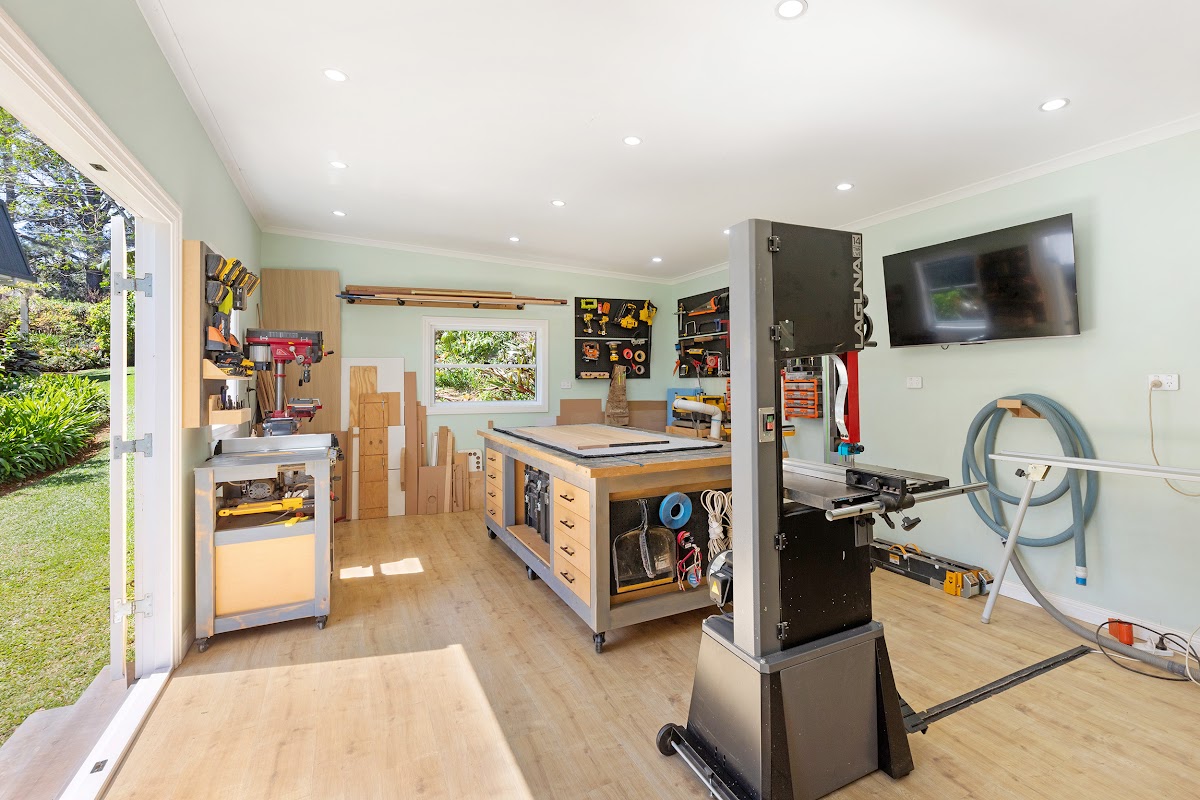 * Separate studio/workshop fully lined, floating floors, extensive lighting, and air conditioned, perfect for an artists studio, yoga room