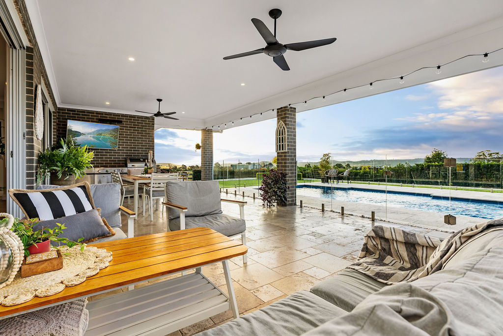 – Expansive 9m x 5m entertaining alfresco includes a BBQ with cabinetry, ceiling fans & is fully tiled in Travertine
