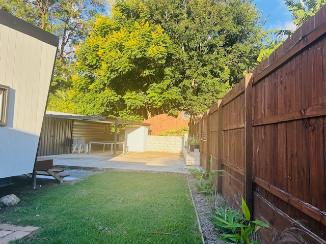 There is a a large undercover entertainment area – low maintenance and a garden shed for your use.