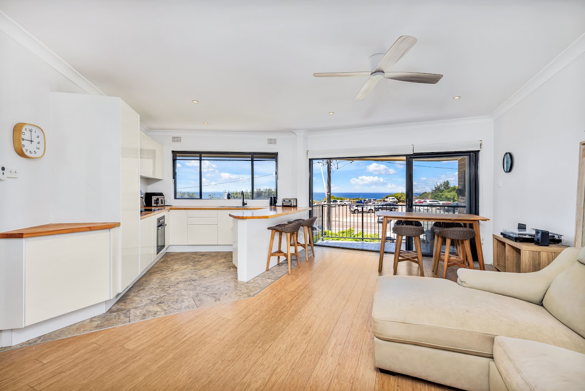 From this open planned, well finished apartment you can watch the whales migrate as the sun rises from your bedroom, entertain friends from the living room, kitchen and balcony as you watch the waves roll in or stroll down to the ocean baths or The Surfhouse for breakfast, lunch or dinner. Enjoy the festivities at The Beach Hotel, a cycle ride through Hickson St Lookout, or a quiet afternoon at Burwood beach for a relaxing finish to the day.