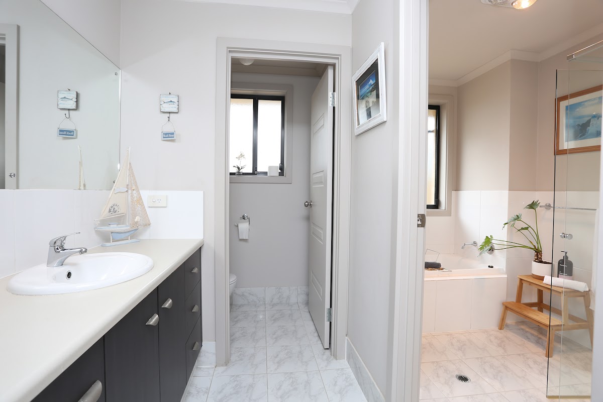 An entertainer’s paradise, the property offers a large patio area with plenty of room for a pizza oven and BBQ, overlooking the semi in ground swim spa, deck with frameless glass pool fencing. Beautiful resort style gardens with a lawn area for the kids to play and a fire pit area with built in seating.