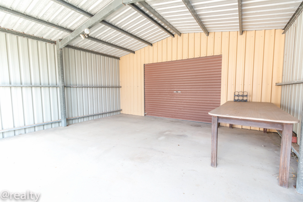 carport off the front, great for fishing gear, small boat and additional storage.