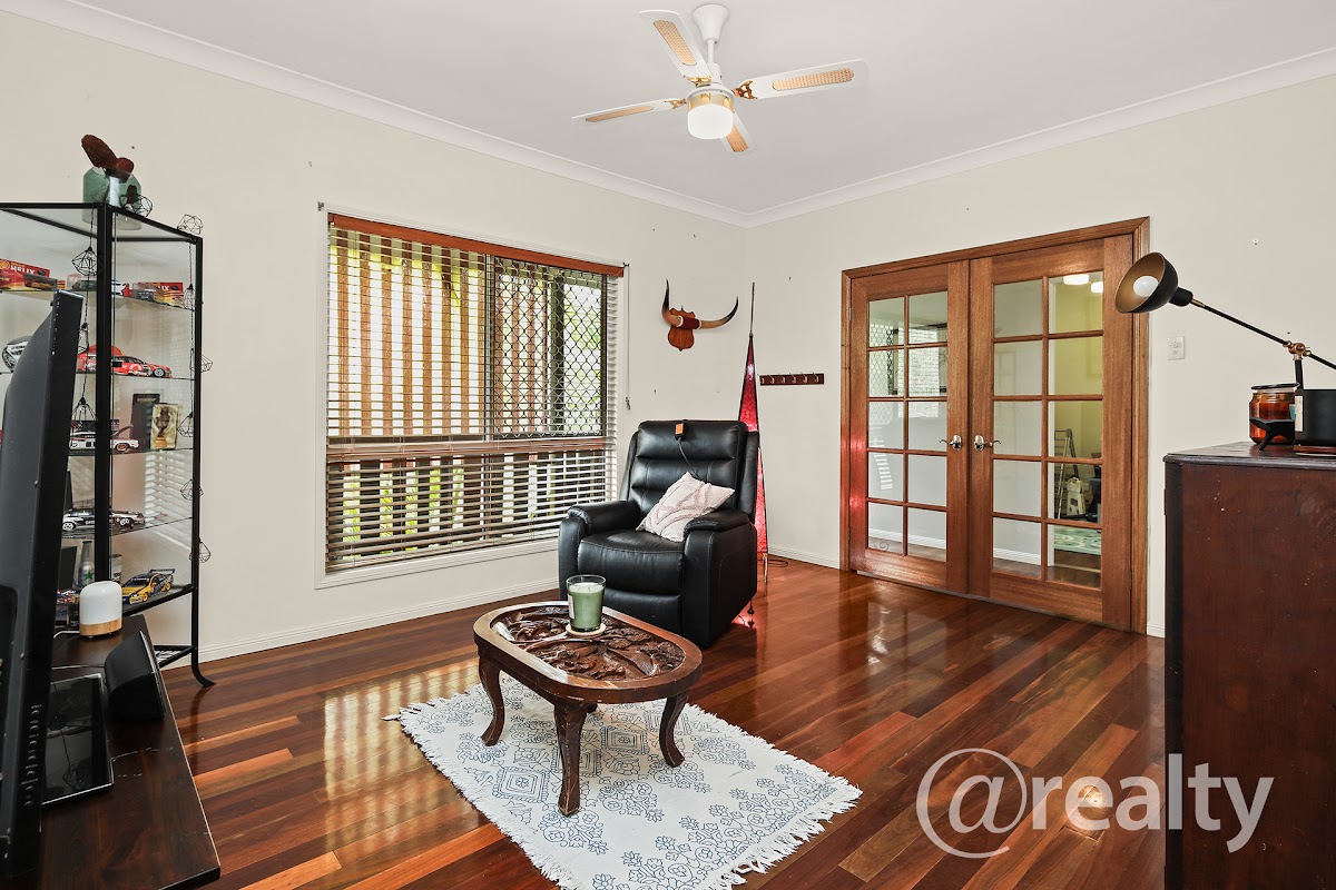 Nestled on a sprawling 15,000 sqm (1.5 ha) private estate with only one neighbour to the south, this flood-free, 5-bedroom ensuite family home offers the perfect blend of country charm and modern convenience. This classic Queenslander boasts a huge, insulated hardwood verandah, a fireplace, polished timber floors, Daikin split-system air conditioning in the main area , air conditioning in main bedroom and ample ceiling fans throughout.