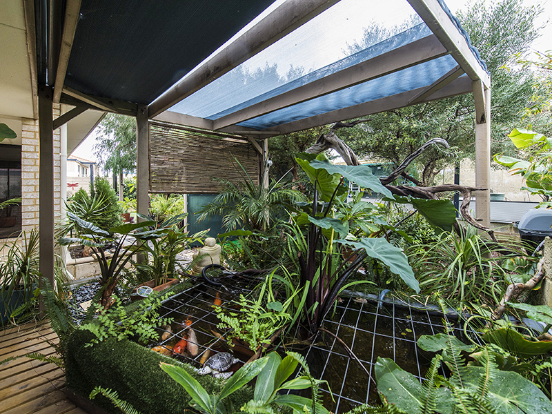 The back yard is perfect for the green thumb and will become you own little sanctuary with fantastic use of potted plants, trees, fish pond, pergolas, artificial turf, raised garden beds and more!! It even includes and outdoor open air workshop or it could be converted into a spectacular aviary.