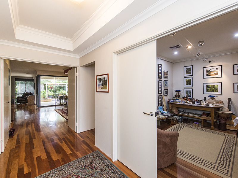 Once you come through the superb glassed and tinted double door entrance the front of the property includes your study, theatre room, internal access from the garage and a separate wing to the home. This wing is where you’ll find the other three minor bedrooms with BIR’s, main bathroom with bath / shower and laundry.