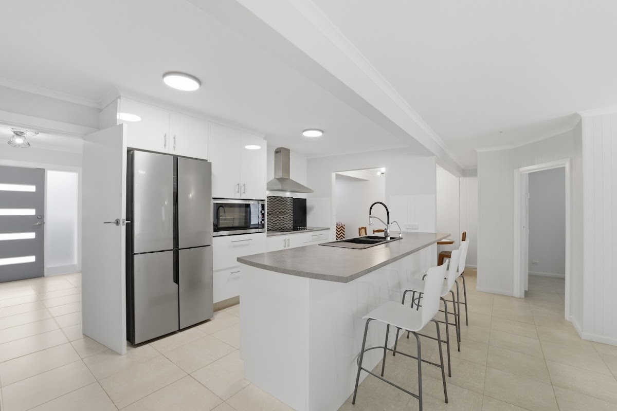 Polished floorboards and wide windows make the front lounge feel incredibly inviting, drawing the view into the room. The kitchen sits in the centre, linked to the meals and family area around a broad breakfast bar that handles morning routines with ease, and steps straight out to the backyard for relaxed evenings and weekend time outdoors.