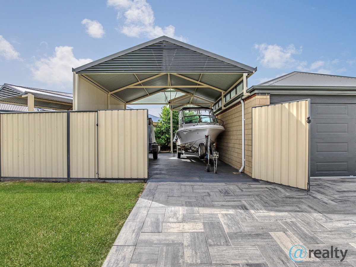 * Enormous under cover boat port with 3m high clearance and approx 50sqm area provides the perfect space to store your caravan/boat and or trailer securely behind double lockable gates