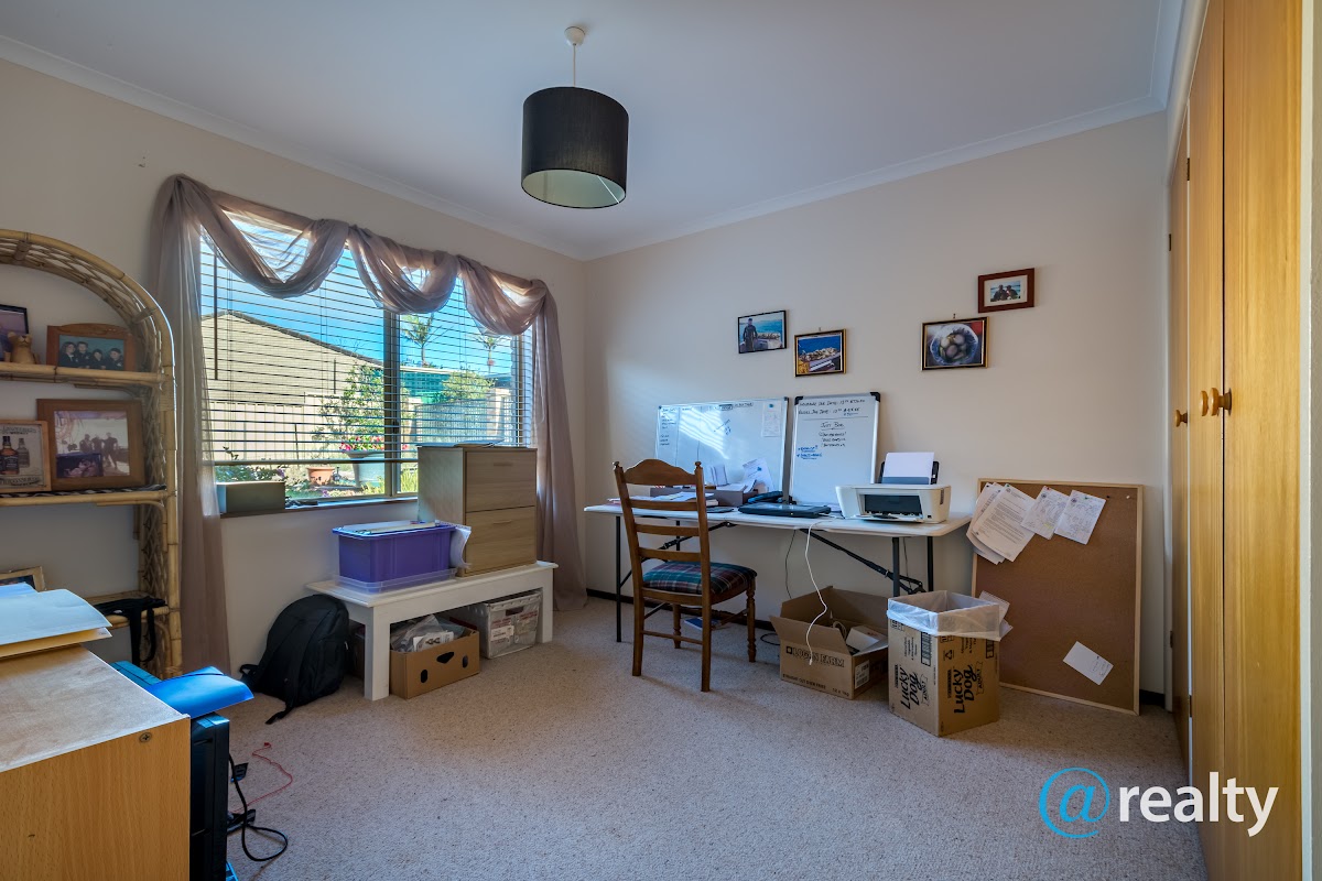Bedroom two is at the end of the corridor, also queen size with built in robes – currently used as an office. It has lovely views out over the lush back patio.