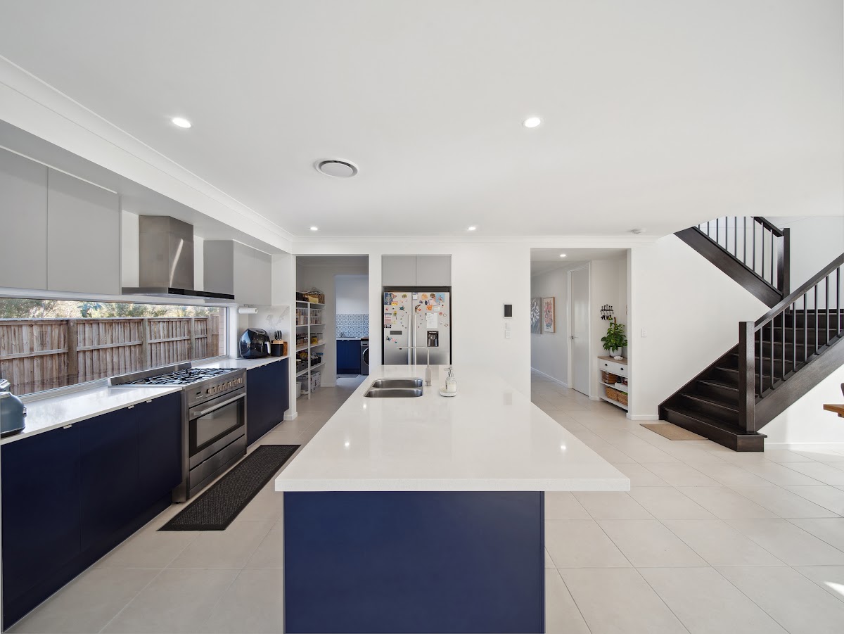 Spacious and open-plan living is guaranteed in your new light and breezy living, dining and kitchen areas which flow seamlessly from the indoors to the outdoors. For the chef of the home, the oversized modern kitchen is an absolute dream, boasting an upgraded Caesarstone island bench-top, 5 burner gas cooktop, 90cm oven, generous walk-in pantry and more storage than you’ll know what to do with.