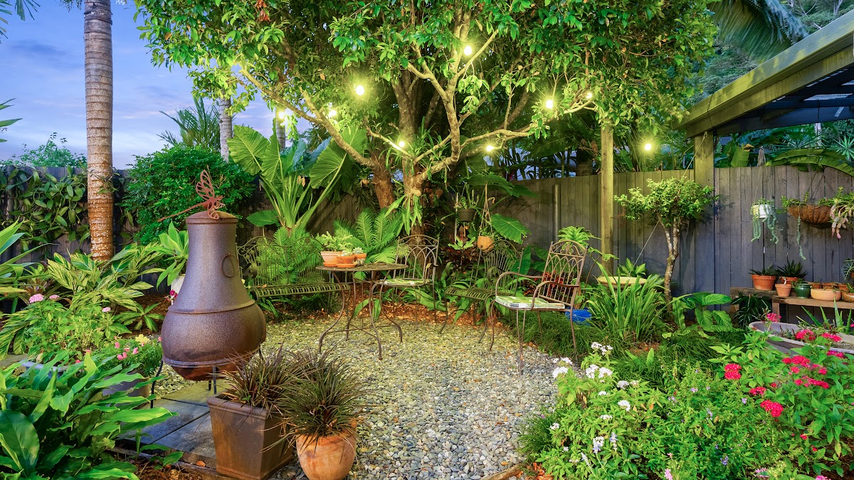 – Secret gardens with abundant veggies and herbs, rockeries with picture-perfect flowers, neat garden paths and a private garden sitting area with twinkling evening lights and room for your fire pit