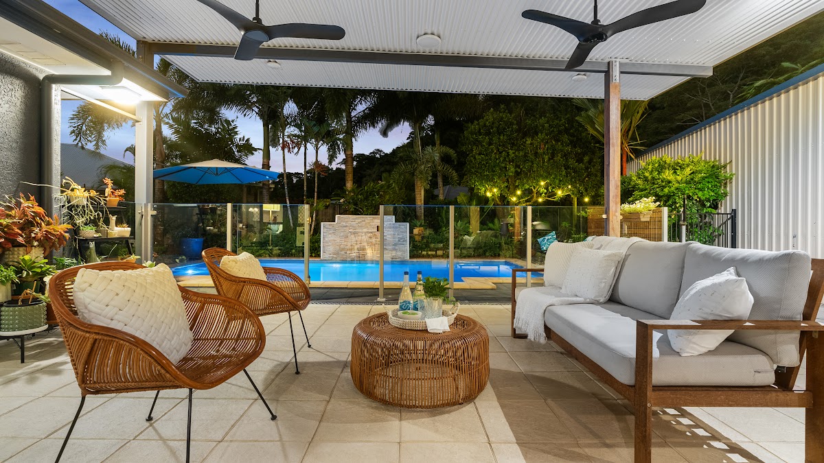 – Enormous extended patio is cleverly designed for the morning sun and afternoon shade and is perfect for entertaining with room for a lounge, dining, bar, BBQ and pizza oven, overlooking a sparkling tropical pool with stunning water feature and a private backdrop of beautiful established trees and lovingly nurtured gardens