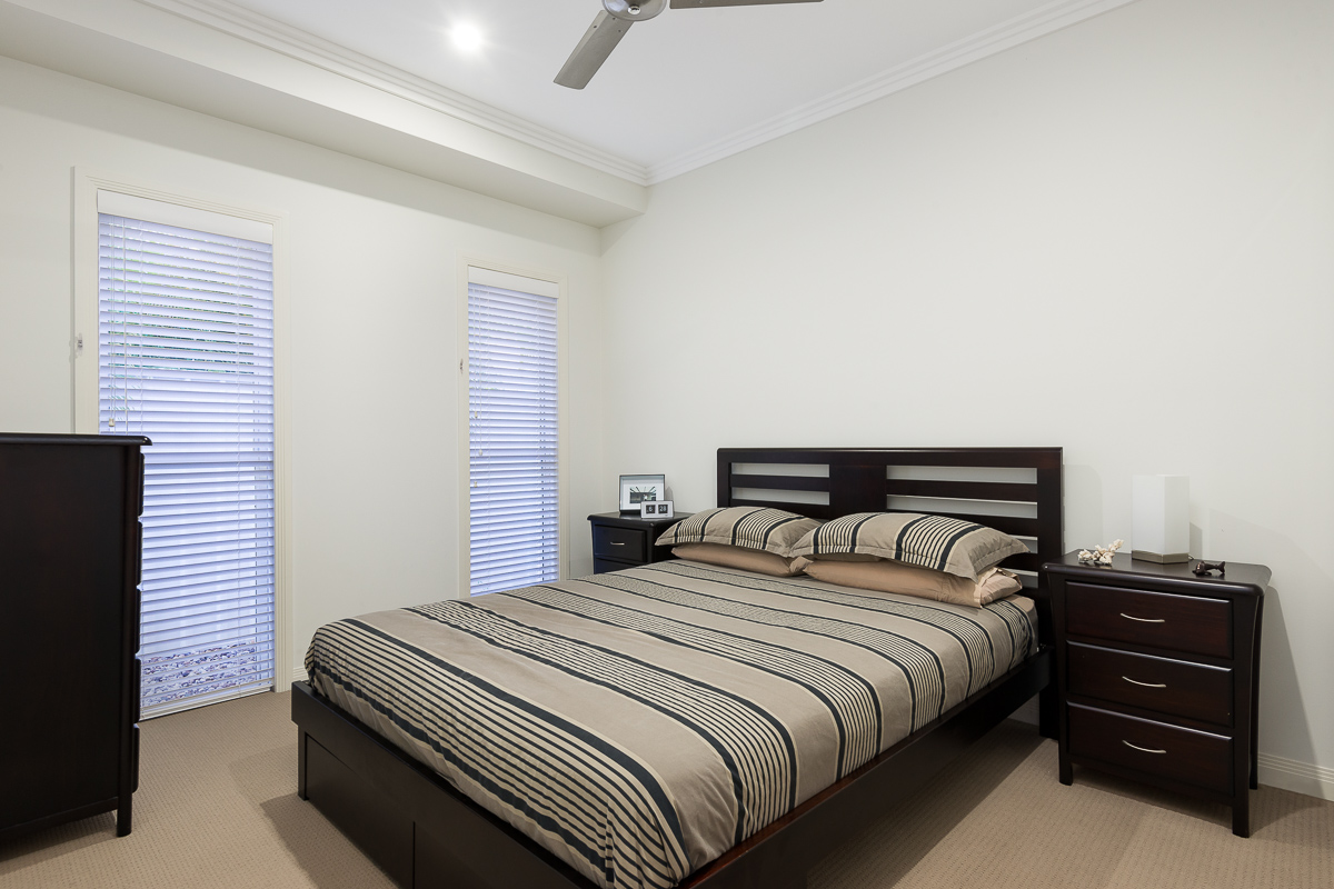 The open plan hub of the home was designed with entertaining family and friends in mind. The gourmet kitchen features stone bench tops, Smeg stainless steel appliances and Butler’s pantry. This space allows light and air to flow freely. The use of bifold and stacker doors throughout the living and dining areas allow a seamless flow into the outdoor spaces which are perfect for entertaining all year round. Overlooking the pool is the covered alfresco area, complete with a fan and audio speaker and fantastic built-in B-B-Q area. You may choose instead to take in the views of the canal and your private pontoon from the fabulous open-air deck, which is the perfect spot to watch the sunset dance its way into the evening.