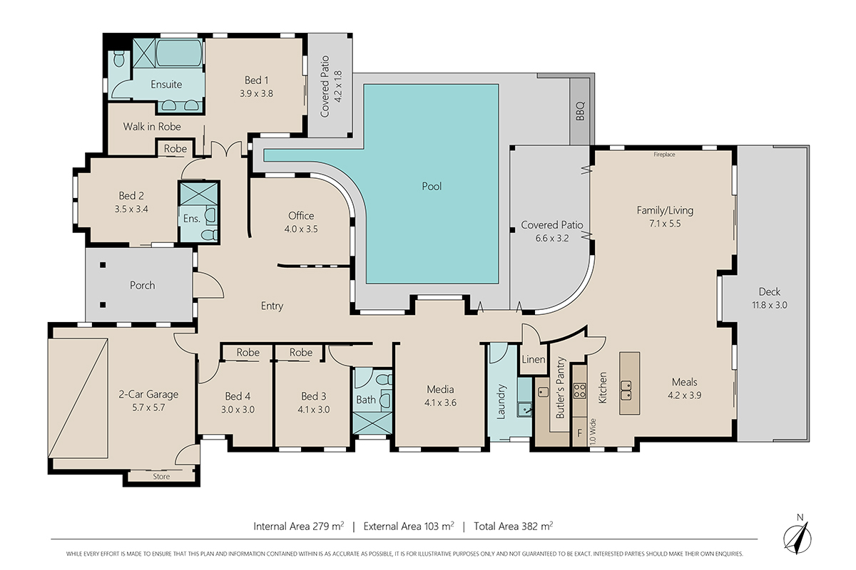 Four generous bedrooms await you. The master suite features an ensuite with large spa bath, separate toilet and double vanity, a walk-in robe and covered patio. The second bedroom has private access, and ensuite and all bedrooms feature ceiling fans, ducted air con and built-in robes.