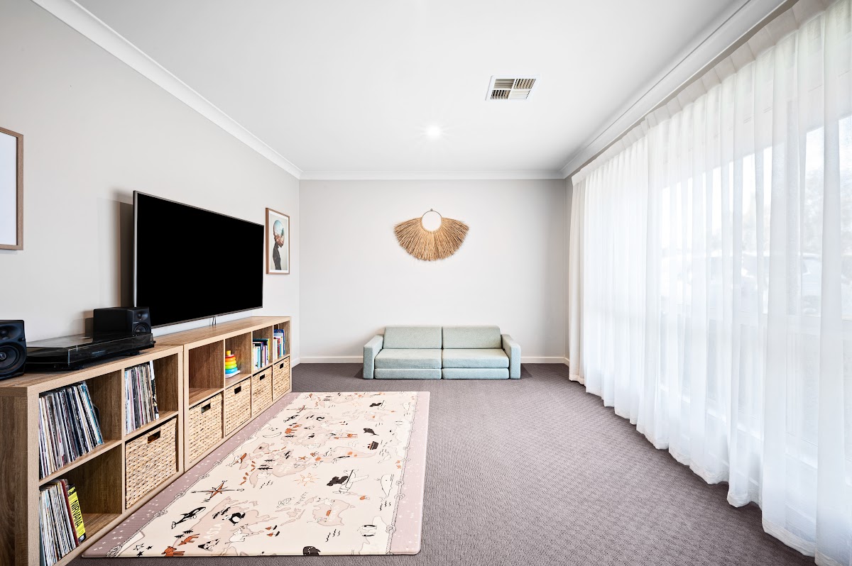 On entering the home, you will find a good-sized main bedroom with an ensuite and walk-in robe to your left and a lounge room or parents’ retreat to the right, ideal as a quiet, relaxing space.