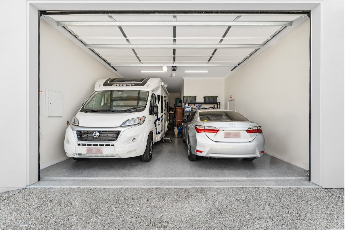 • Garage: A double garage designed for convenience, accommodating a car plus either a caravan, RV, or boat. Features include epoxy flooring and built-in storage for all your adventure gear.