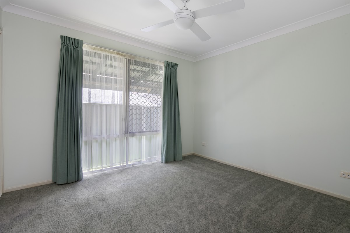 Both bedrooms have built in wardrobes, new ceiling fans. The Main bedroom does have a new air conditioner plus a bracket on the wall to attach a small TV ( if so desired). Both bedrooms have curtains as well as the living area which also boasts timber venetian blinds . The bedrooms do achieve privacy as the spacious bathroom is positioned between the bedrooms.