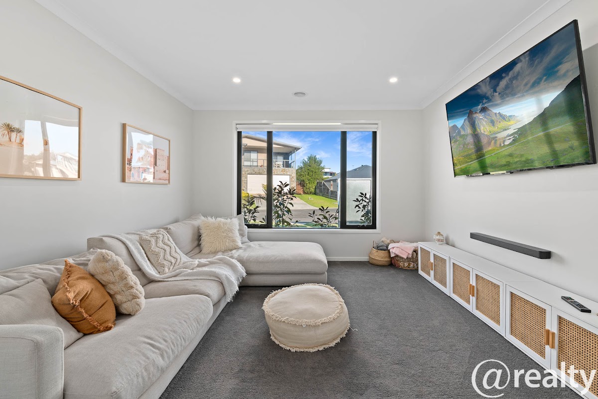 Staged over one lavish level, the home delivers an immediate sense of space with a wide entrance hall guiding you through to a separate theatre room, an open–plan living dining, and kitchen domain, the kitchen features a central breakfast bar/island bench and quality appliances including gas cooktop and dishwasher and walk-in pantry and large laundry.