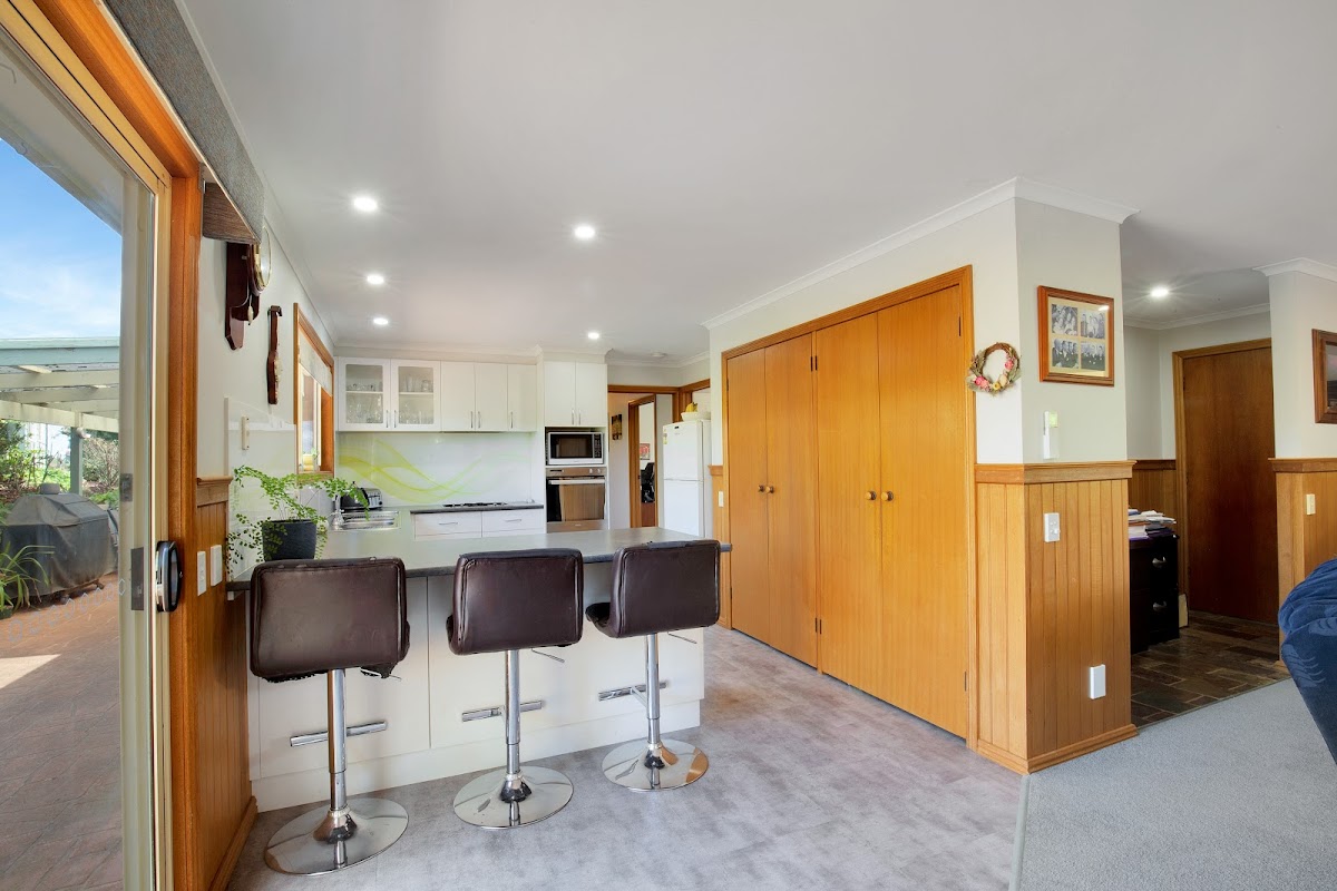 There is handy, covered direct entry to the home via the carport, making bringing the weekly shop in from the car a breeze in all weather conditions. Sliding doors enter into the updated kitchen with breakfast bar, dishwasher, good storage and spacious open plan living and dining area with wood fire and R/C air conditioner.