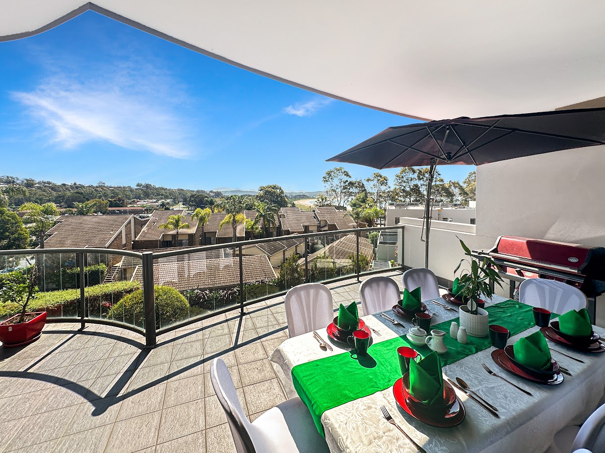 – Amazing beach, tree and water outlook from the semi-covered outdoor entertaining area