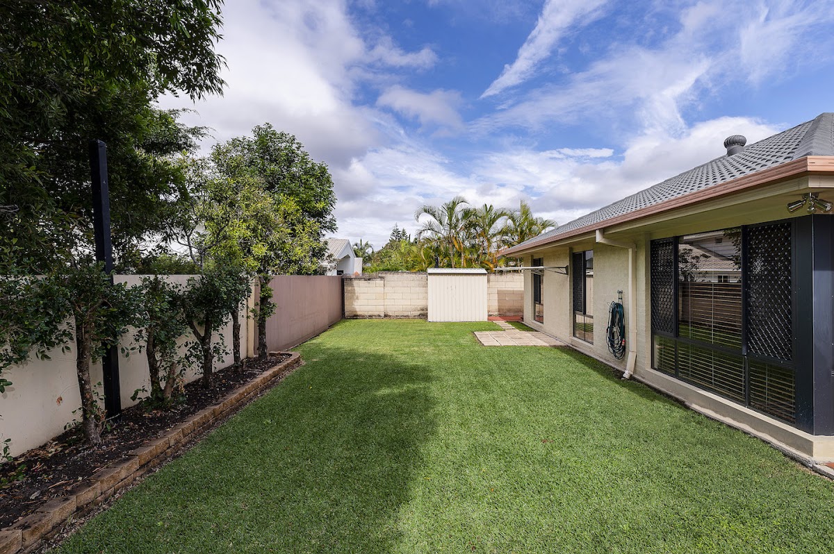 Large grassy rear yard with minimal maintenance gardens