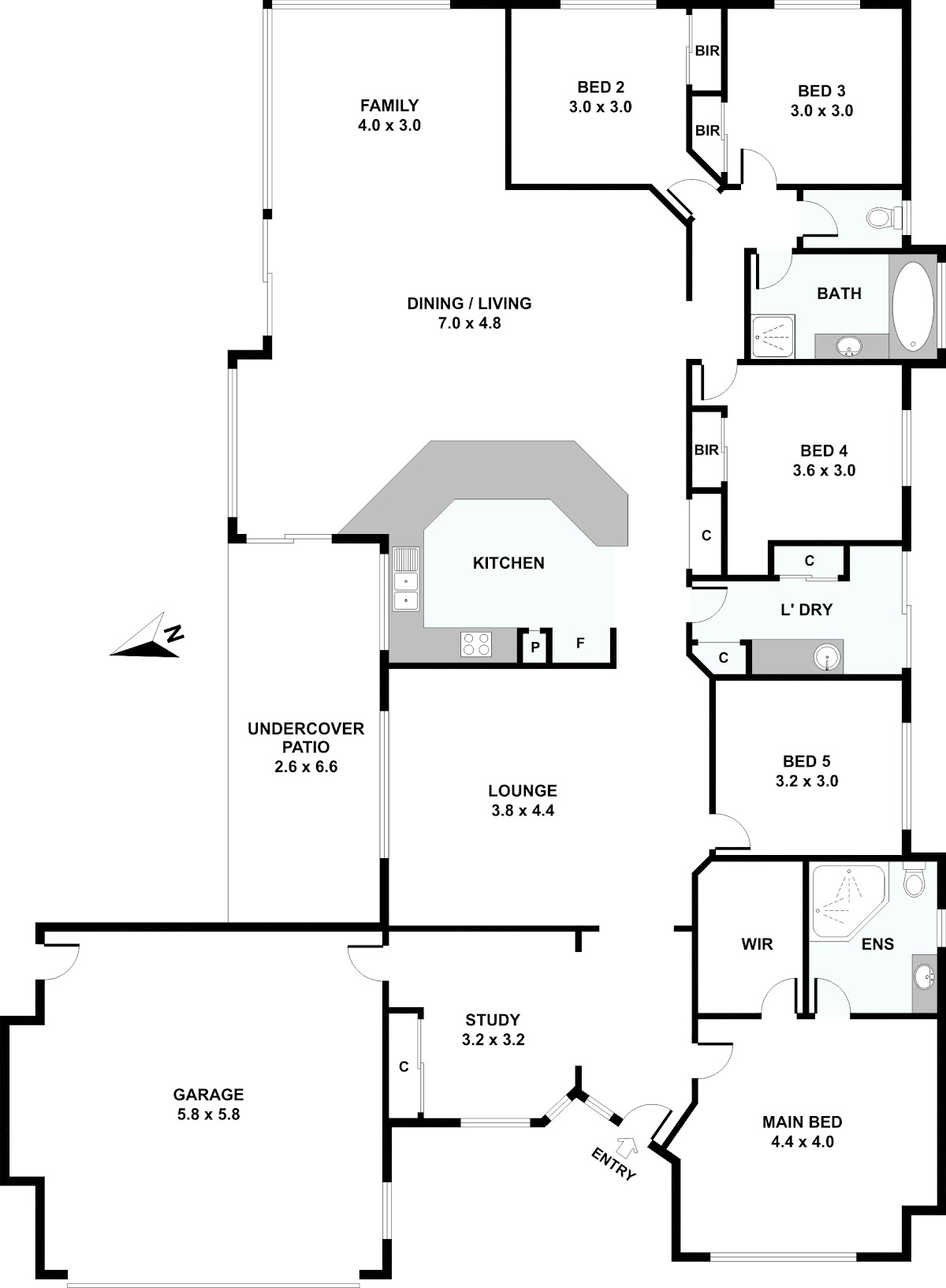 + 3 further bedrooms, all with built-in wardrobes & fans
