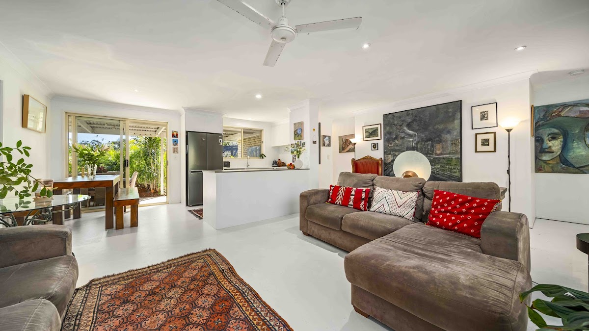On entry the open floor plan with living, dining and kitchen flows out onto the covered entertaining area and private garden.