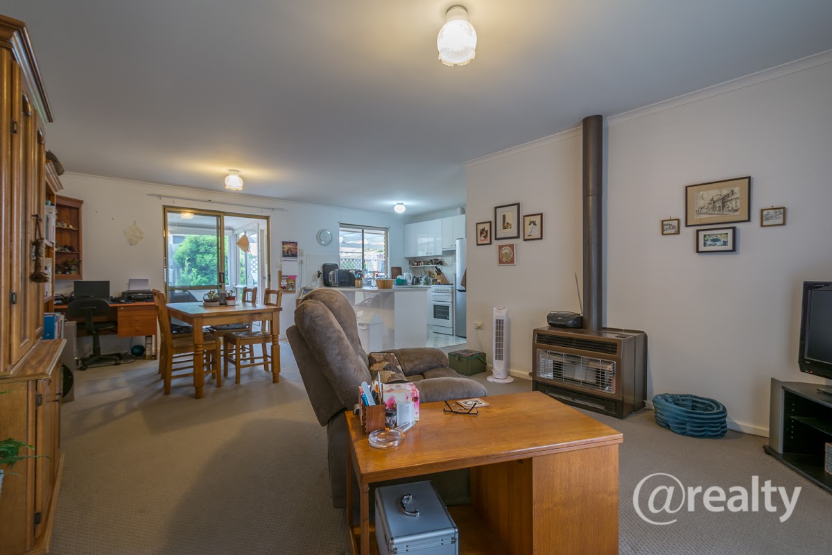 Enter through the front door and you’re in a light and bright open plan area – your lounge, dining and kitchen. On the shorter wall in the carpeted lounge is an economic gas heater to keep you cosy on those cooler Albany nights.