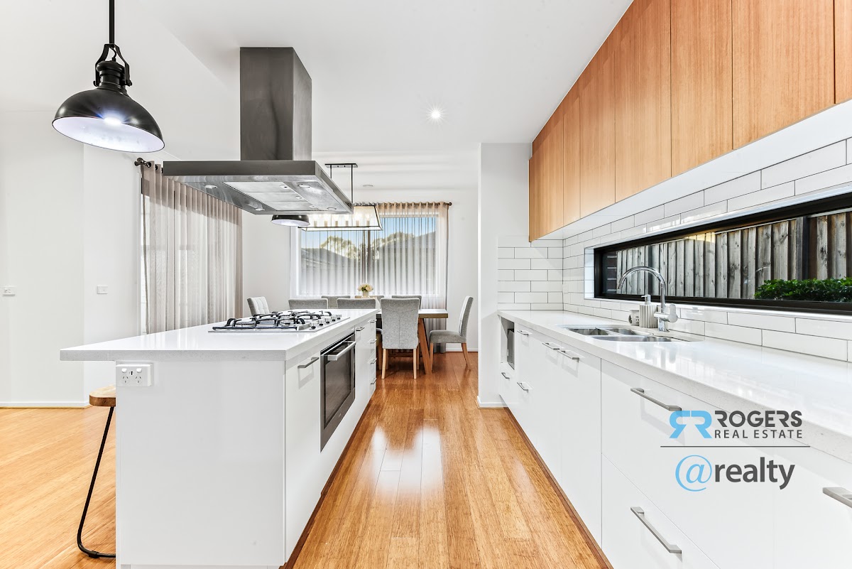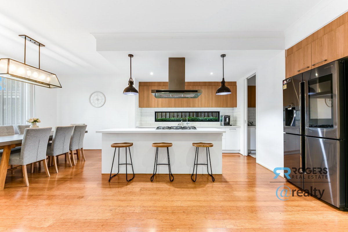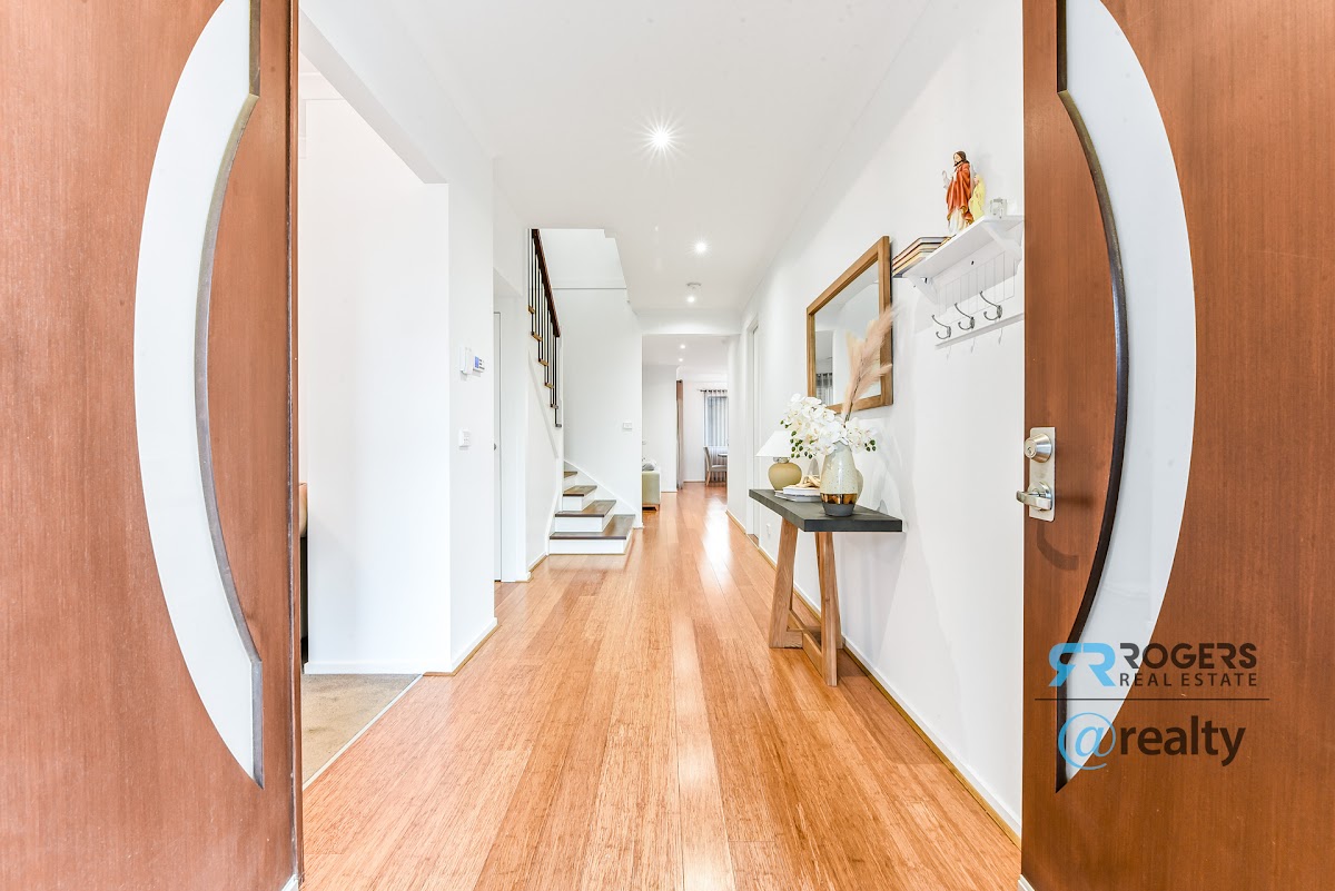 Welcome to this incredible two-storey residence, beautifully designed with a grand facade in one of Officer’s most sought-after areas. As you step through the double doors, you’re greeted by a broad corridor with sleek bamboo flooring. To the left is a cozy formal living area, complete with plush carpet, sheer curtains, high ceiling and ducted heating, offering a luxurious touch right from the entrance.