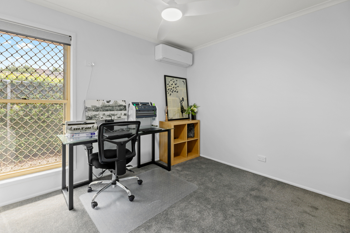 The master suite is a private retreat, featuring a large walk-in robe and ensuite, while all additional bedrooms are well-sized with built-in robes. Stay comfortable year-round with air conditioning and ceiling fans throughout.