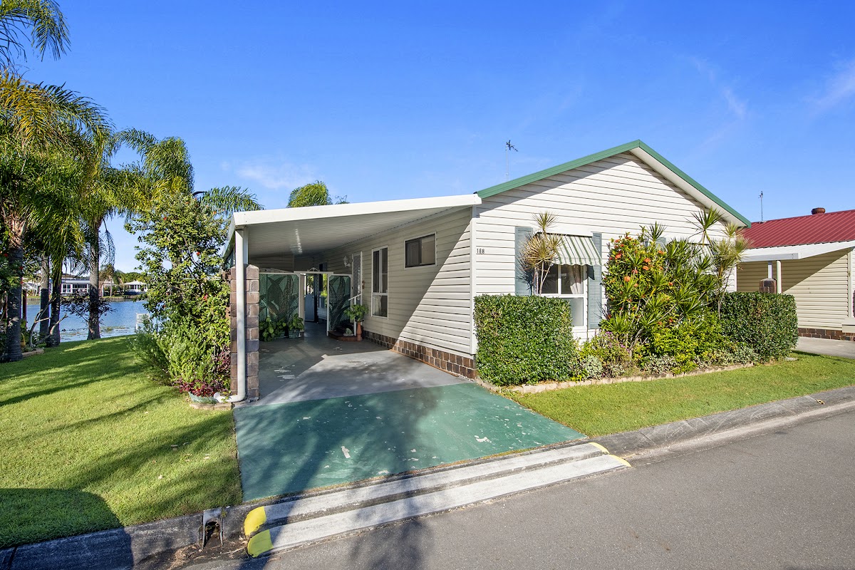 When purchasing in this Park there are no Entry or Exit Fees and no Stamp Duty and No Council Rates to be paid ( as you do not own the land). You purchase the home and Lease the land from the On Site Managers on behalf of the Owners of the Park. Your water charges are inclusive in the Site Fees and your lawns are maintained by the gardener. You are responsible for paying for your electricity, gas if connected and telephone and internet connections.. Your Site Fees for this waterfront home are approximately $206.00 per week. You may be eligible for Rental Assistance Rebate ( because you do not own the land) from CentreLink – check with them to see if you are eligible for the rebate.