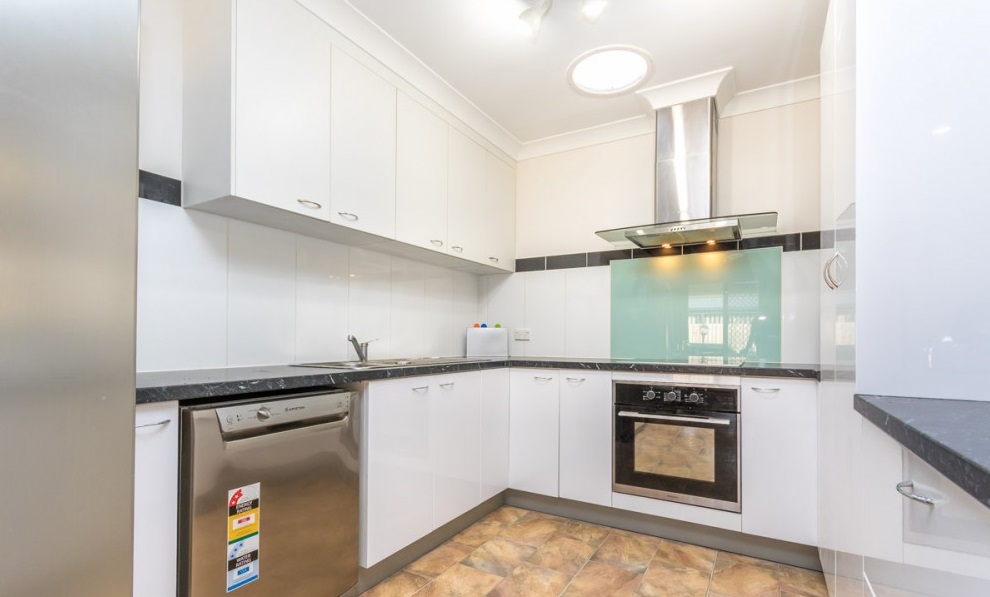 •Beautiful kitchen has stainless steel appliances, fan-forced electric oven and electric stove-top