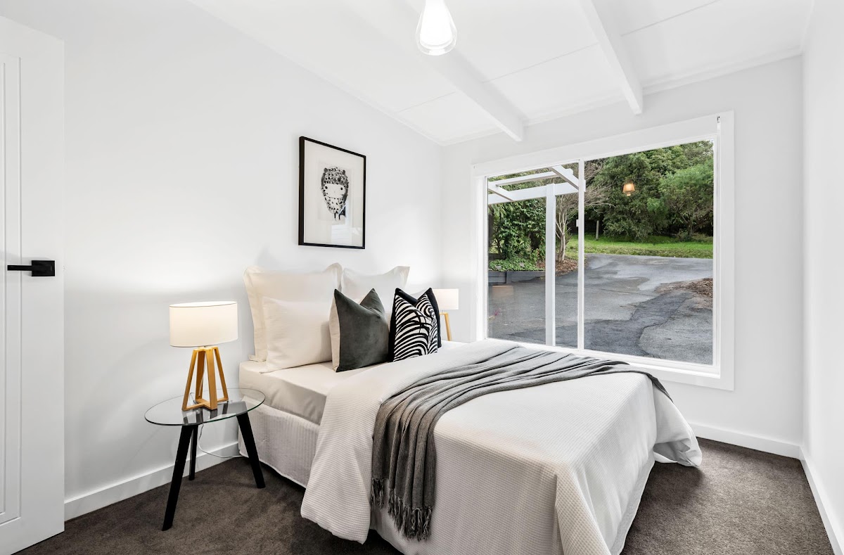 Step inside to discover light-filled open-plan living and dining zones, framed by large windows that draw in leafy outlooks and natural light. Exposed ceiling beams, wide-format flooring and a crisp neutral palette create a warm yet contemporary feel, while seamless flow to the elevated deck makes everyday living and entertaining effortless.