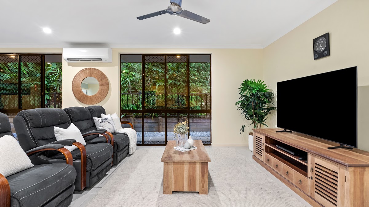 – Cleverly designed with a free-flowing layout, the spacious kitchen, lounge and dining zones transition seamlessly to a generous, private patio, overlooking ample lush green lawns and stunning rainforest filled with the tranquil sounds of native birds