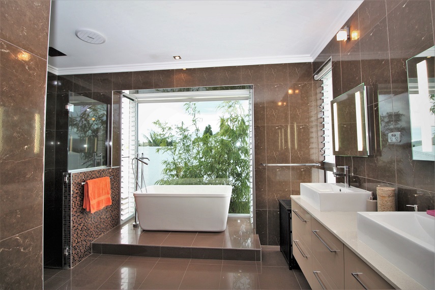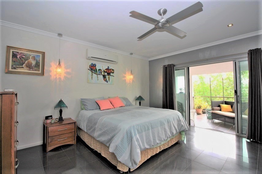 Level 2 has the main bedroom with its own balcony and bathroom. Bedrooms 2 and 3 share a bathroom and have their own living area. The fixture and fittings in the home are of high quality. Numerous bi-focal doors and windows have been designed to capture the light and let in the cool breezes.