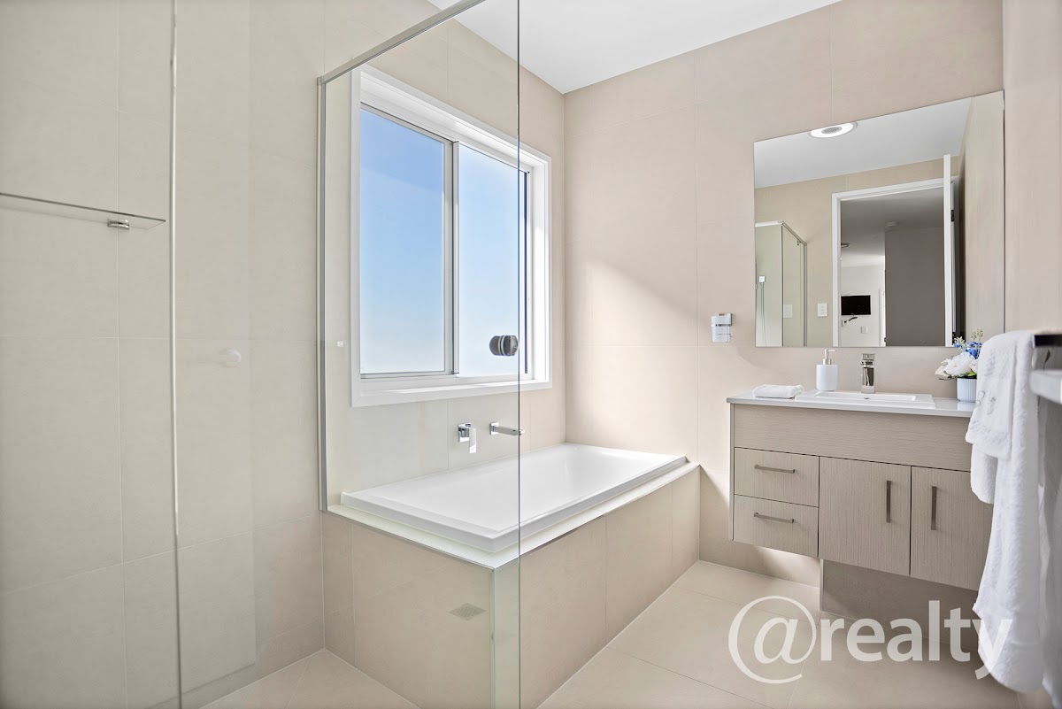 The ground floor features a spacious master suite with a walk-in robe and a luxurious en-suite, boasting floor-to-ceiling tiles good size shower. Additionally, discover a separate laundry room, ample storage space, and a guest powder room for added convenience. The patio area, enclosed with versatile bi-fold doors, offers flexibility for various uses to suit your lifestyle needs.