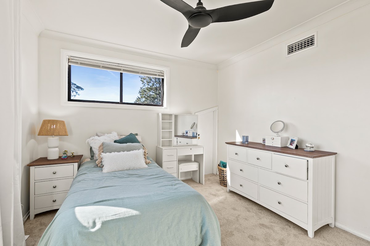 This home is situated within walking distance to Menangle Station, Menangle Store and adjacent to a children’s park. The home features 4 bedrooms all with ceiling fans and three with robes. The master bedroom includes a new modern ensuite and walk-in-robe. It opens to its own private deck, which makes it a perfect parents retreat.