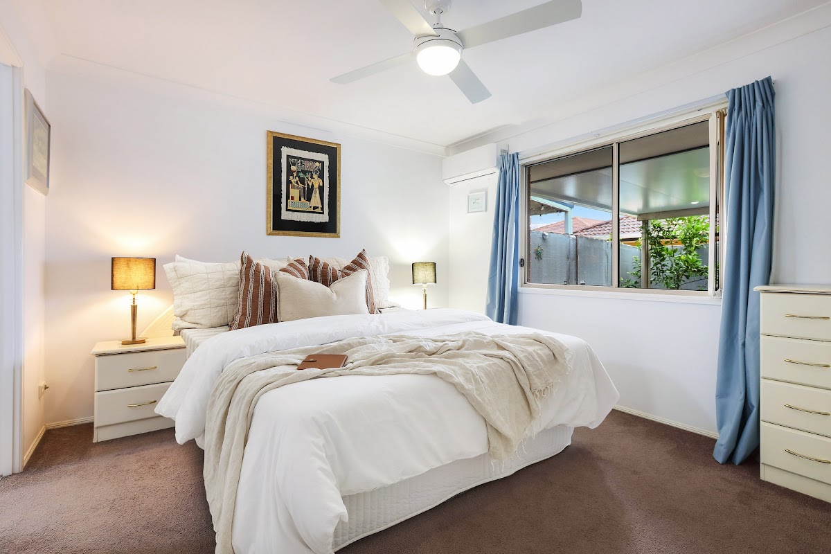Discover the perfect blend of comfort and elegance in this stunning single-level villa. Featuring an open-plan layout, this home boasts three spacious and light-filled bedrooms, all newly carpeted and equipped with ceiling fans and built-in wardrobes. The master suite overlooks the garden and is complete with an ensuite and air conditioning for your comfort.